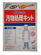 花王 嘔吐物や排泄物の処理時の必需品!かんたん汚物処理キット02P25Sep09 価格: 682円 レビュー評価: 0.0 レビュー数:0 セット内容 使い捨てマスク 1枚 使い捨てエプロン 1枚 使い捨て手袋 2双(4枚) 使い捨て帽子 1枚 使い捨て靴カバー 1足 計量カップ 1個 ポリ袋 2枚 高吸水シート 15枚 紙製ヘラ 2枚 使用マニュアル 1枚 入数 1セット(処理1回分) わかりやすいイラストマニュアル付で、初めて使用する方でも簡単に処理できます。感染リスクのある嘔吐物、排泄物などをすばやく安全に処理できます。充実したセット内容で、汚物による作業者の感染リスクを低減します。後処理が容易な高吸収シートで水分をすばやく吸収。 Supported by 楽天ウェブサービス |